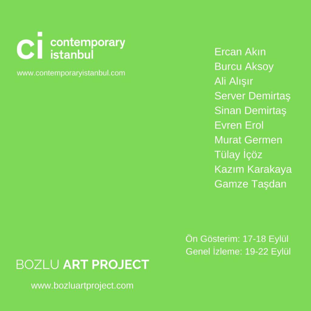 Burcu Aksoy, Ercan Akın, Ali Alışır, Server Demirtaş, Sinan Demirtaş, Evren Erol, Murat Germen, Tülay İçöz, Kazım Karakaya ve Gamze Taşdan’ın yapıtları Bozlu Art Project’in T8-26 numaralı standında izleyici ile buluştu.