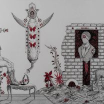 His paintings both include elements such as vanitas, emphasizing the ephemerality of the world, and figures in search of immortality over the centuries. This is somewhat reminiscent of “yin/yang” – and it is the heart of nature that truly embodies the concepts in question. Using fantastic, figurative and surreal elements together, the artist adds red into his overall monochrome paintings heavily in black and white. Red, for him, is practically the colour of life.