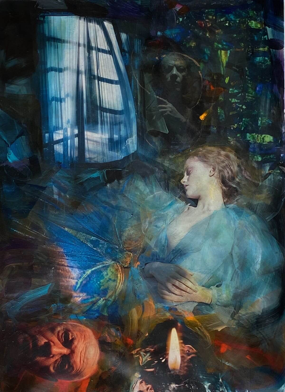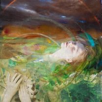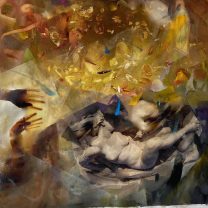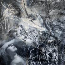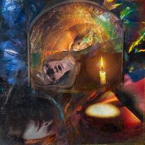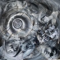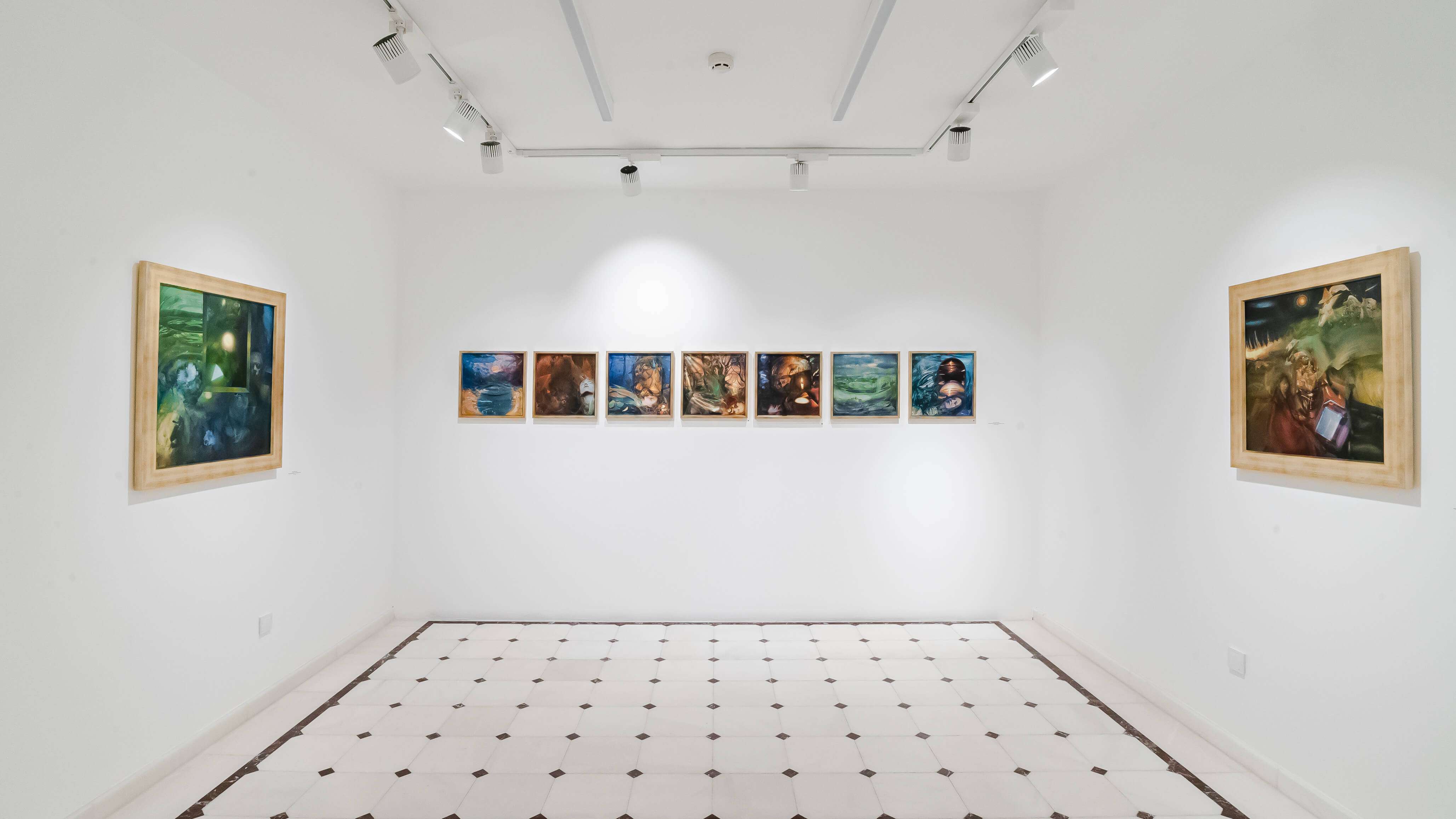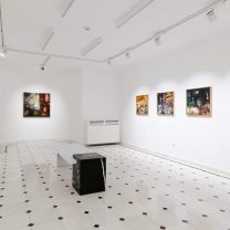 Utku Varlık’s exhibit titled “Illusion” is a nod to writers and poets who have left a mark on him. He starts out with a quote by Rilke: “And what a melancholy beauty came to women when they were pregnant, and stood, their slender hands involuntarily resting on their big bodies which bore two fruits: a child and a death. And that tight, almost nourishing smile that took over their faces, didn’t it sometimes come from sensing that both were growing?”